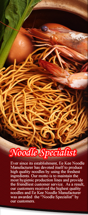 | In the early years, Yee Mee were imported from Hong Kong. Our father conceived the idea to produce Yee Mee that suits the locals' taste buds. Using his years of noodle-making experience, he finally came out with the unique and tasty Ee Kee Claypot Yee Mee. |
